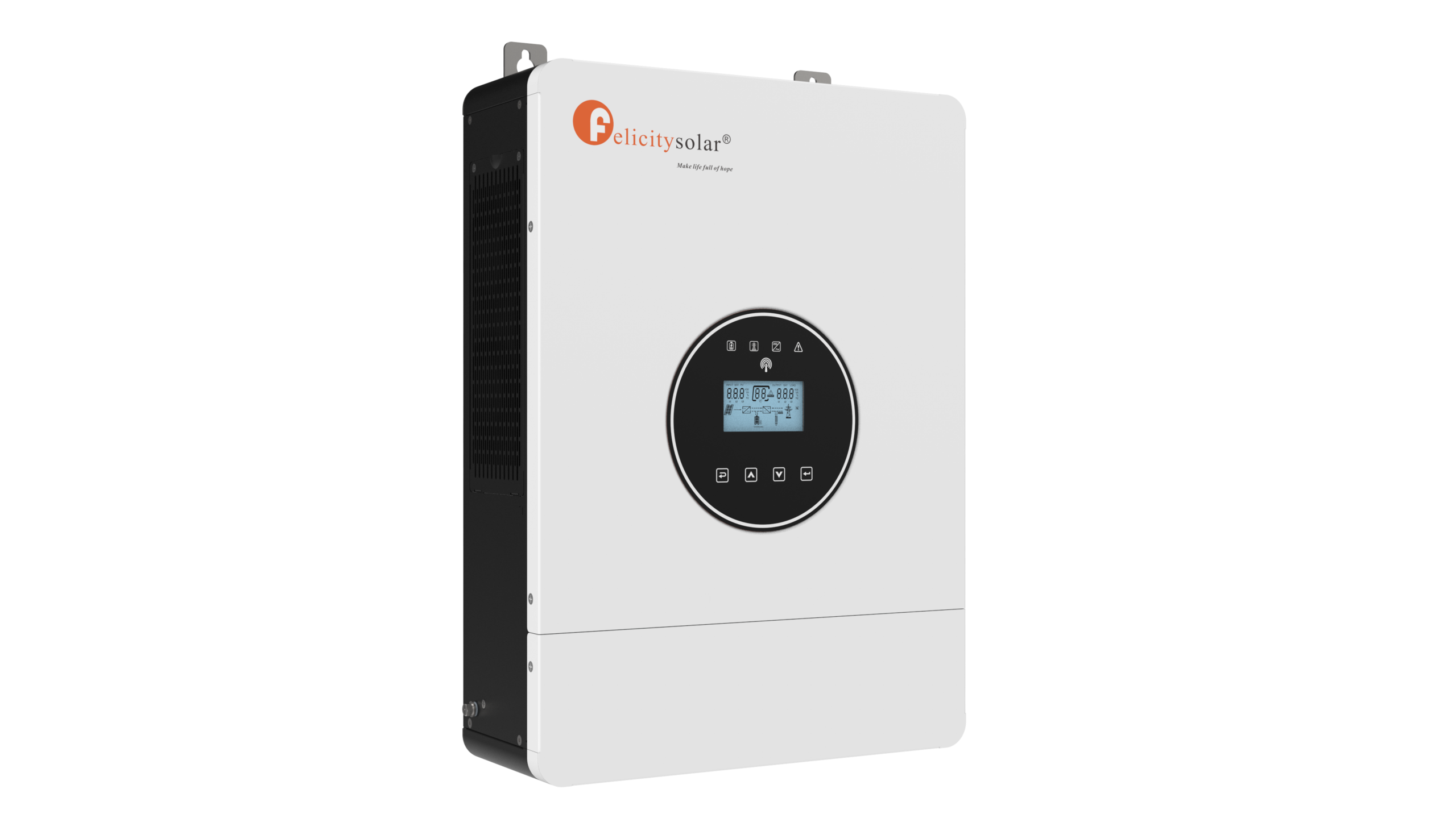 IVEM4024-II: Compact off-grid inverter with pure sine wave output, built-in MPPT solar charger, and AC charger for reliable residential solar backup. Features LCD configuration for AC/solar priority, Wi-Fi mobile monitoring (APP), wide PV input, generator compatibility, and protections. Supports battery-less operation.